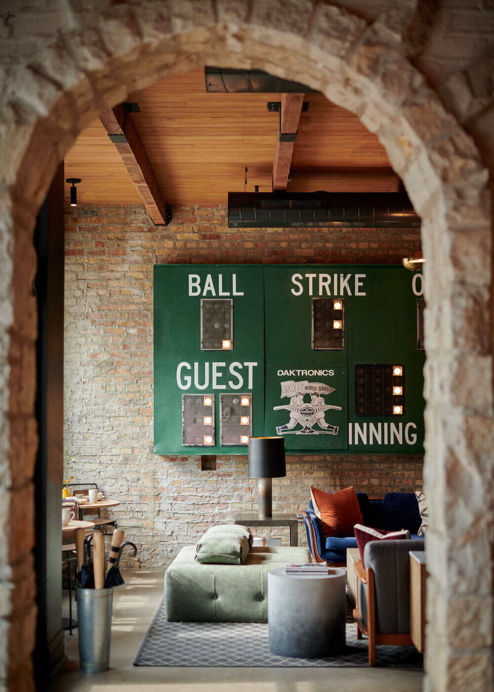 The 21-key hotel was converted from a 20th Century greystone building. Its award-winning, baseball-inspired interior design, was created by our partners from Curioso. Even if a baseball bat art installation flows from one end of the lobby to the other,